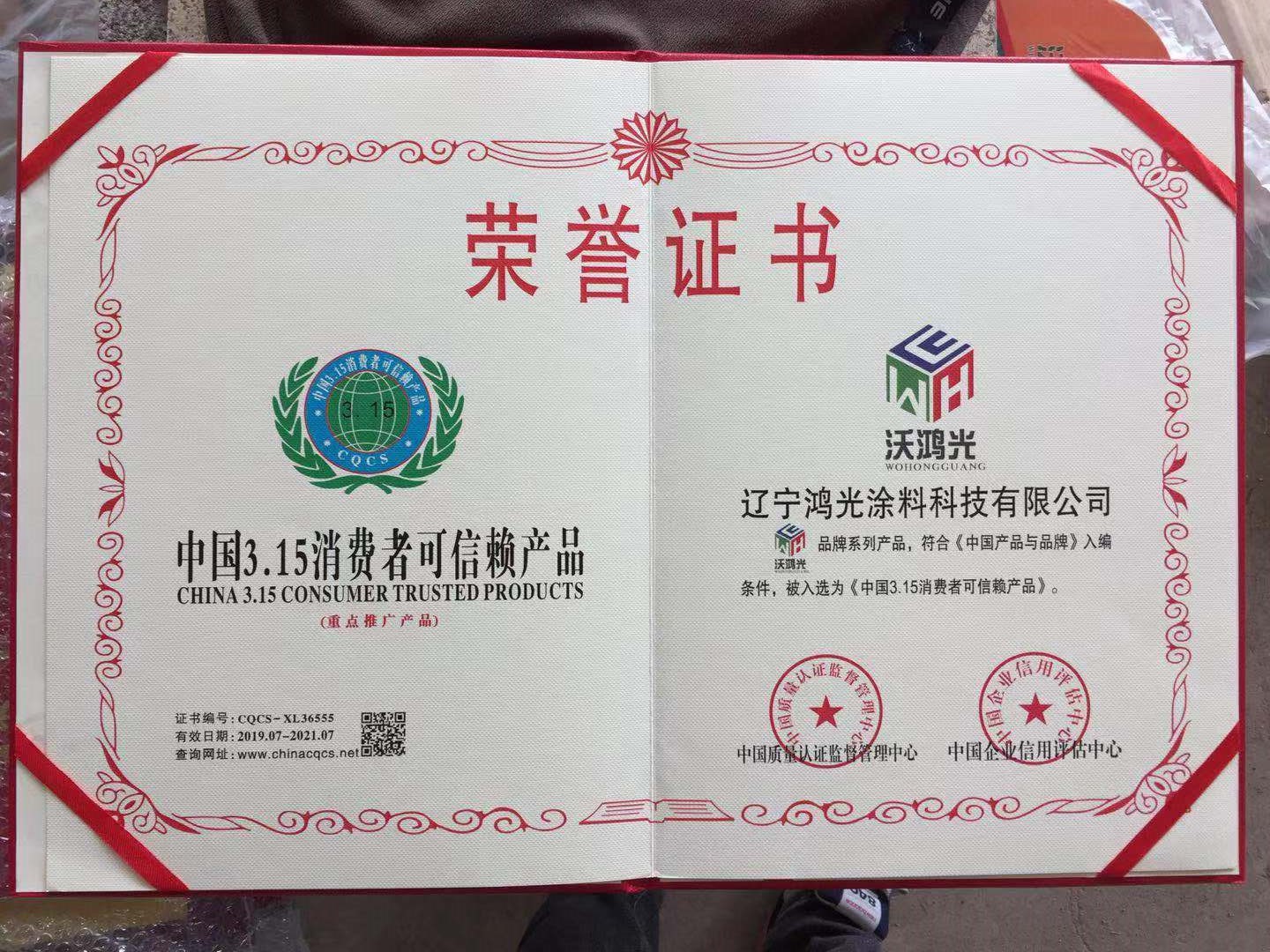 沃鴻光無機涂料被評為中國3.15消費者可信賴產(chǎn)品